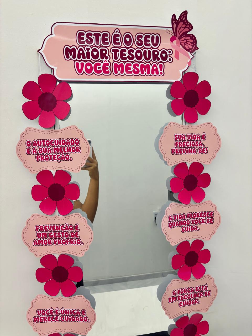 Transforme seu ambiente com o Espelho de Afirmações Outubro Rosa, um recurso encantador para trabalhar o autocuidado, a autoestima e a valorização da vida! 🌺