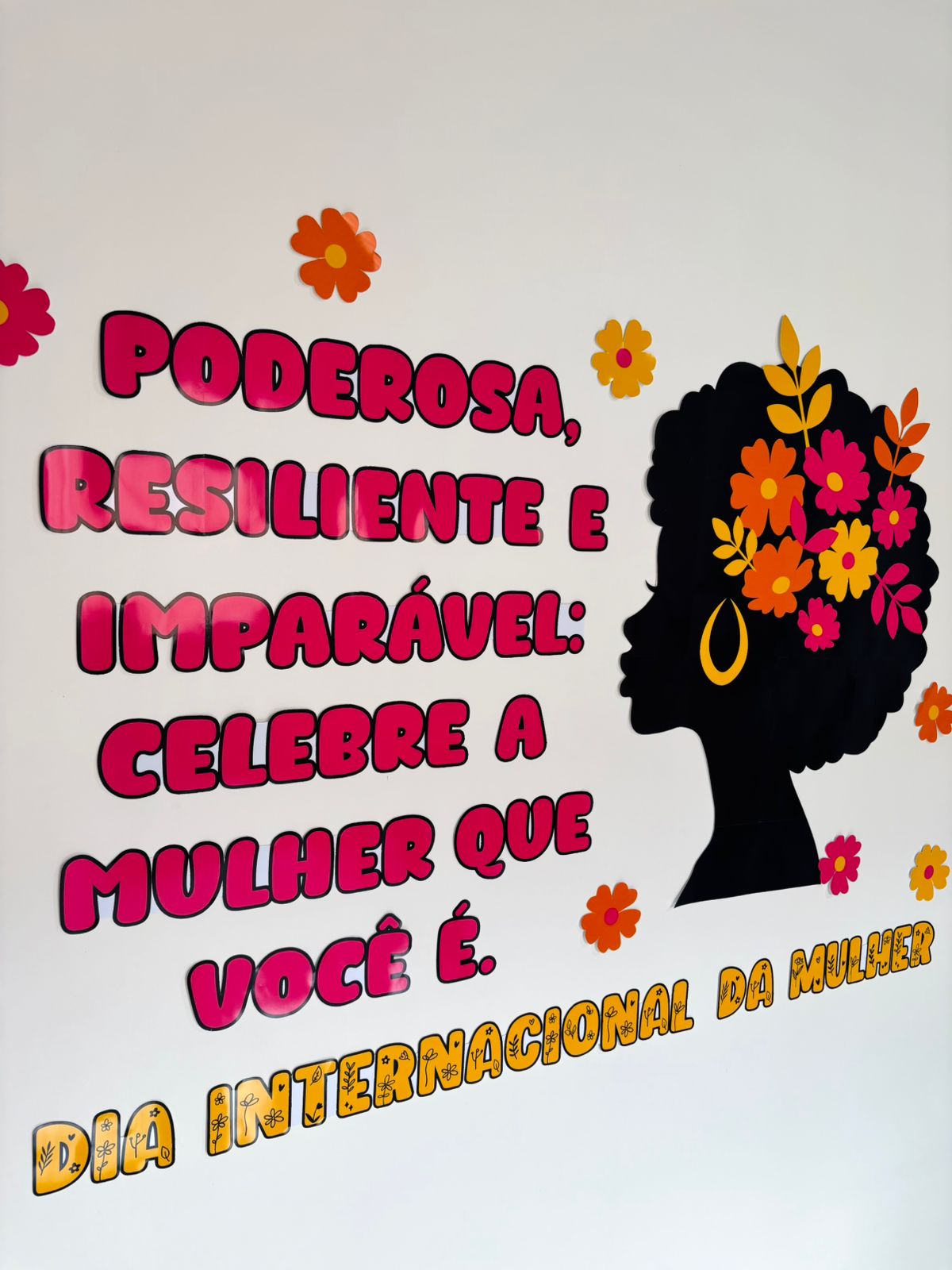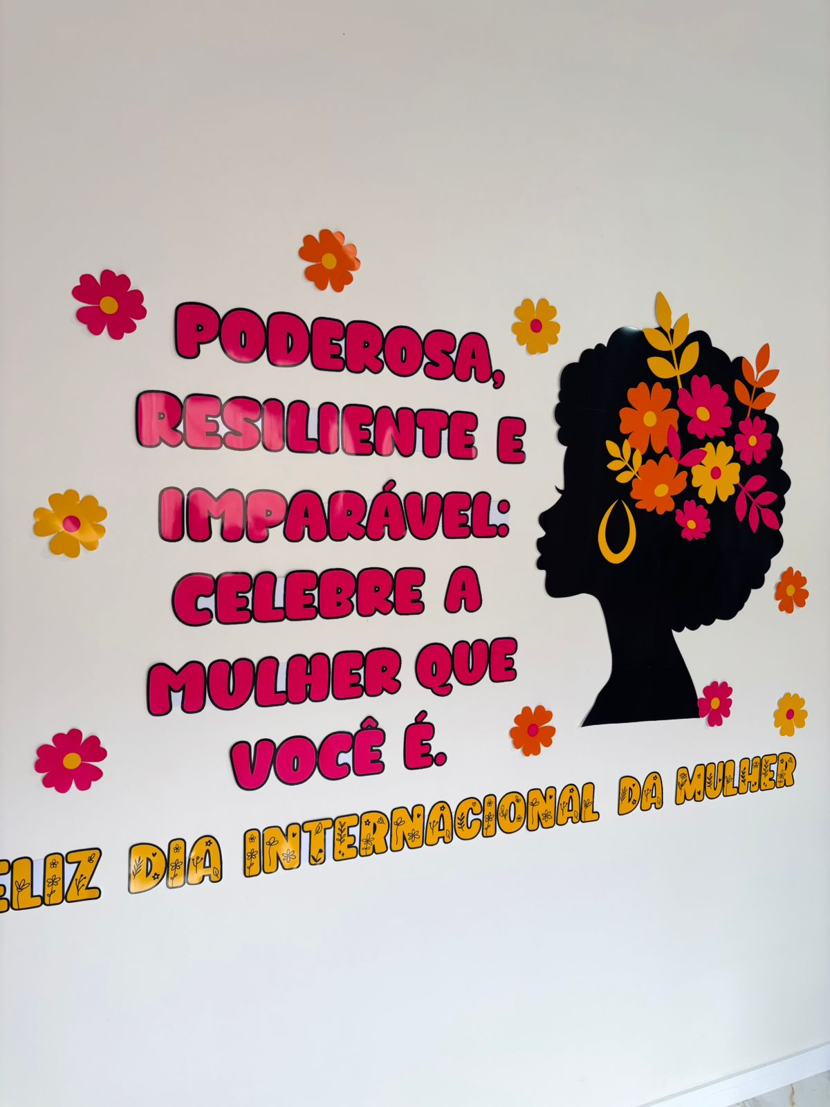 Com um design moderno, vibrante e repleto de elementos florais, ele é a escolha perfeita para decorar escolas, empresas, unidades de saúde e espaços educativos durante o mês de março.